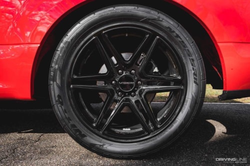 With the large diameter wheels, he was concerned that he might have run into a problem. The Belltech lowering spindles require a 20” wheel minimum, and he wasn’t interested in mismatching sizes. Luckily, a quick search revealed that Nitto had just released the Nitto NT555RII DOT compliant drag radial in the exact size he needed, 305/40/22.