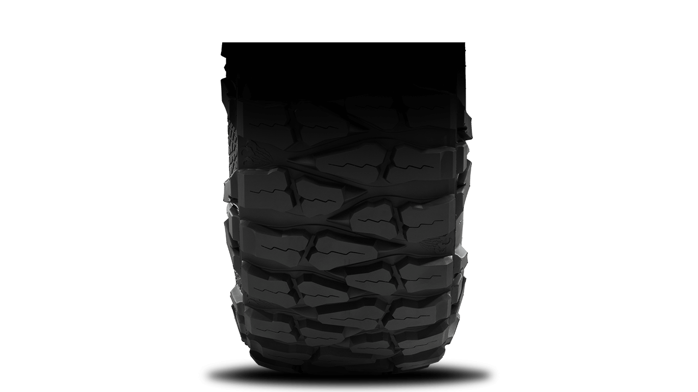 The high void ratio between the tread blocks efficiently clears mud and dirt from the pattern to provide excellent traction in extreme terrain.
