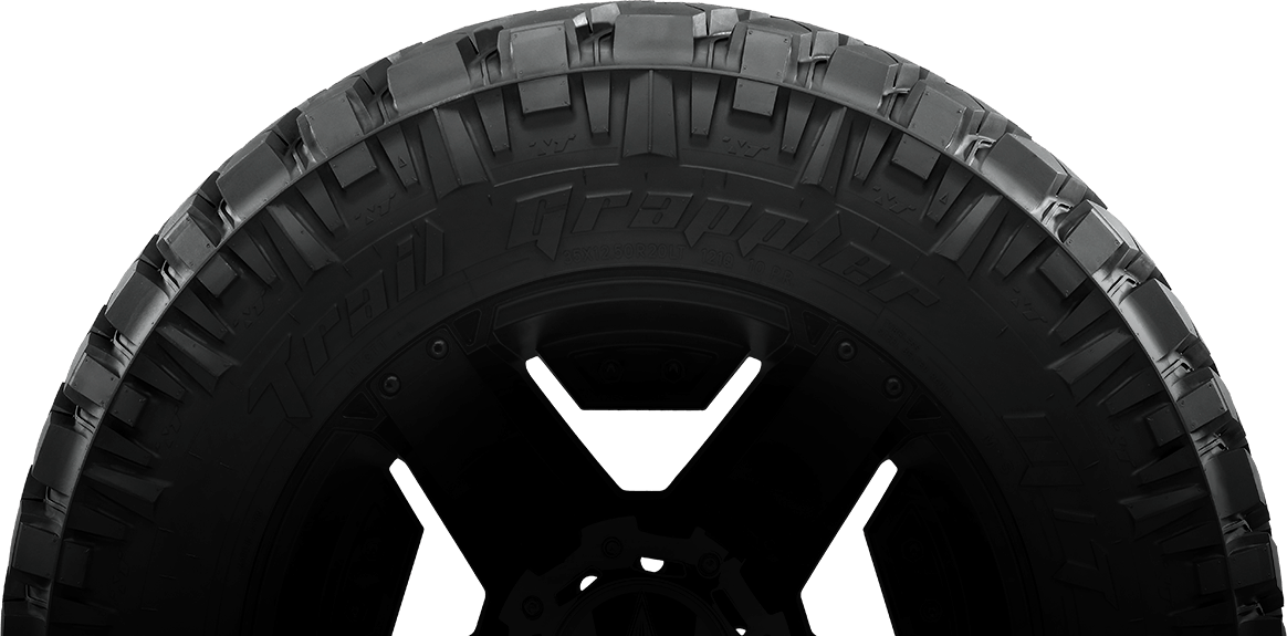 Each Grappler has two sidewall designs so you can choose how your tires look. On the Trail Grappler one side has stylized lettering with V-shaped sidewall lugs and the other has traditional lettering with flat buttresses.