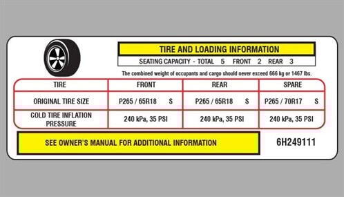 You will find the recommended pressure on a placard or sticker in the doorjamb, glove compartment, or near the gas cap. If your vehicle does not have a placard, check the owner's manual or consult the vehicle manufacturer, tire manufacturer, or your local tire dealer. The tire placard tells you the maximum vehicle load, the cold tire pressure, and the tire size recommended by the vehicle manufacturer.